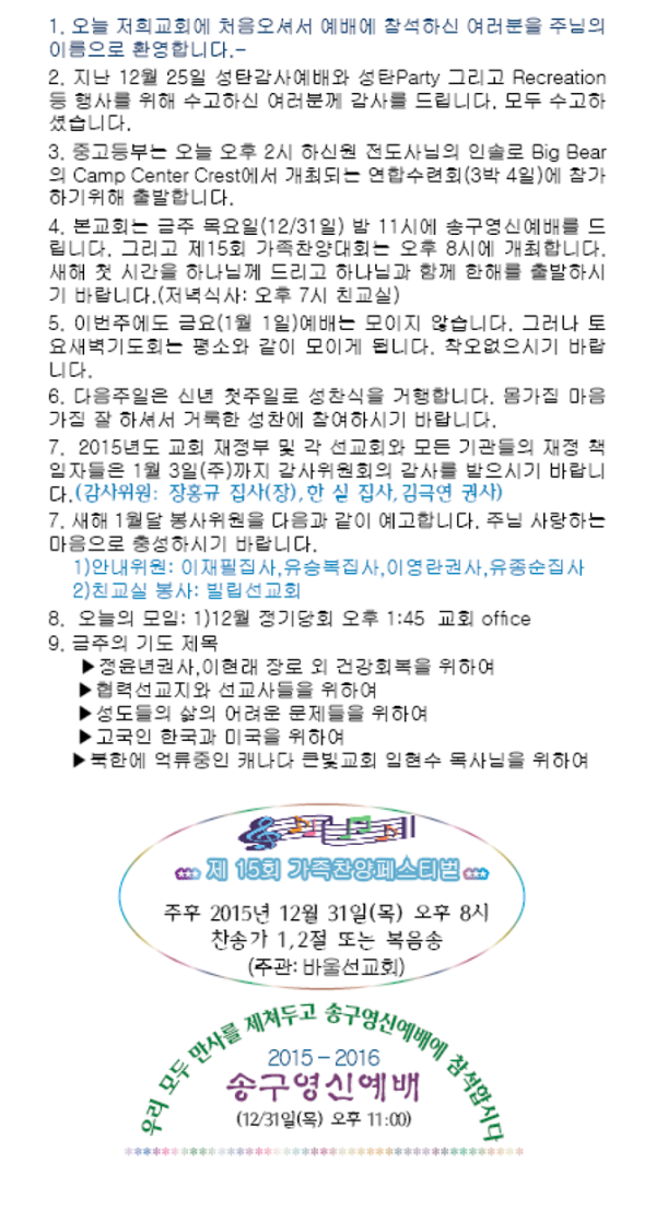 - 다음글12/20/15 주일 교회 소식 15.12.19
