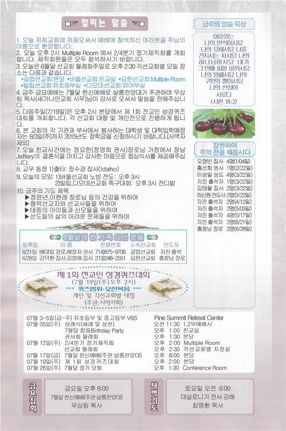 07/12/15 주일 교회 소식