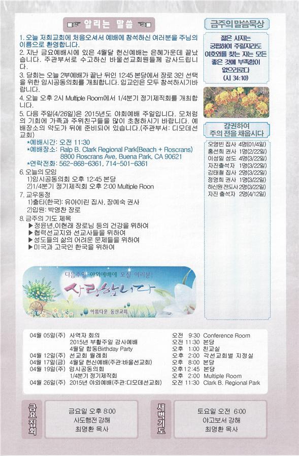 - 다음글04/12/15 주일 교회 소식 15.04.11