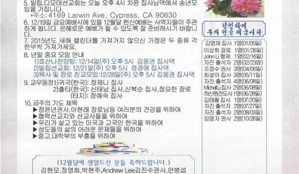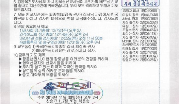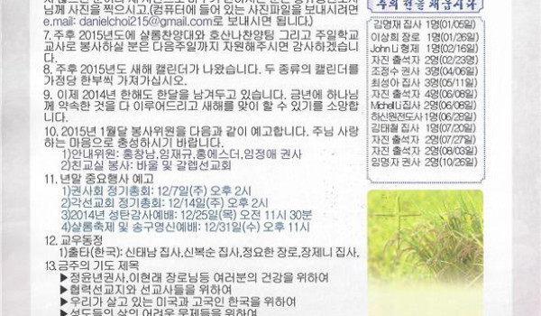 12/07/14 주일 교회 소식