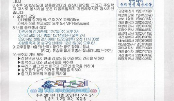 11/16/14 주일 교회 소식