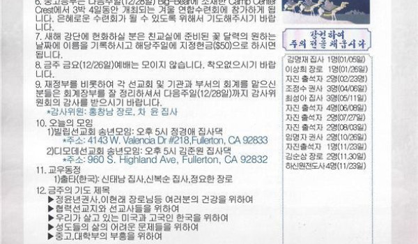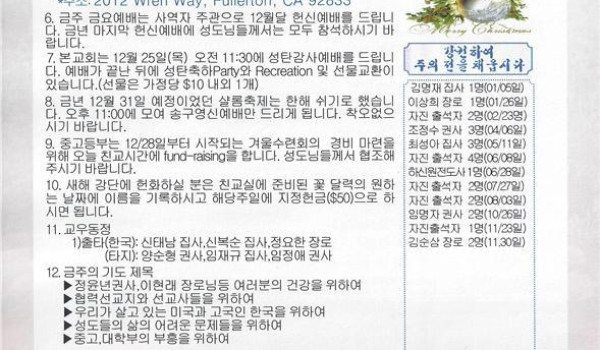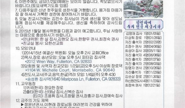 12/28/14 주일 교회 소식