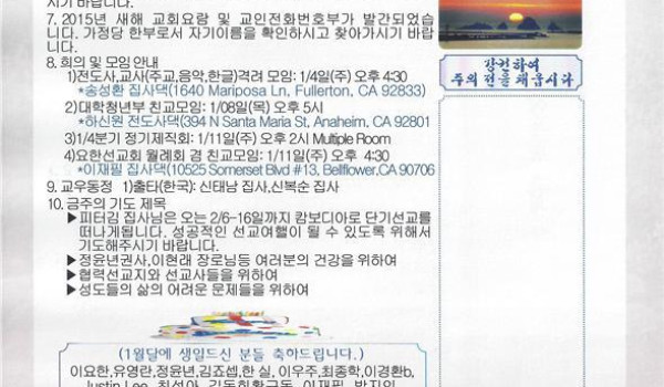 01/03/15 주일 교회 소식