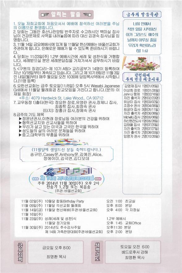 11-02-14 주일 교회 소식
