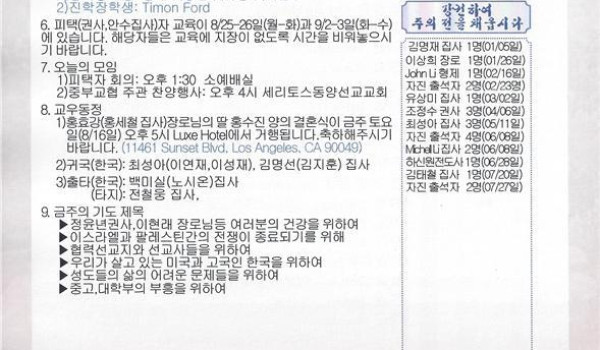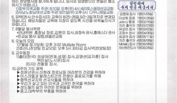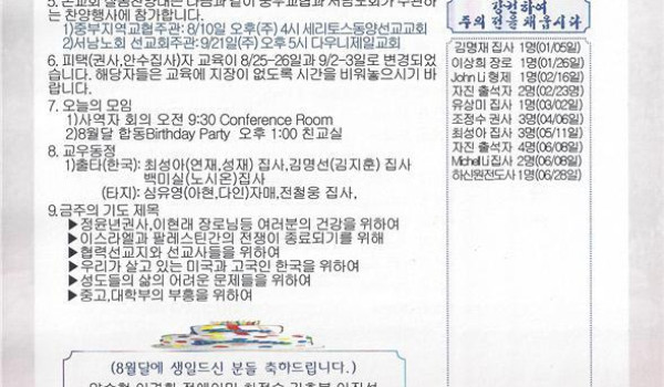 08/03/14 주일 교회 소식
