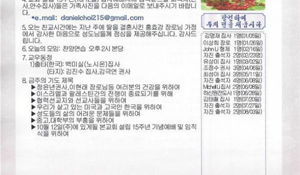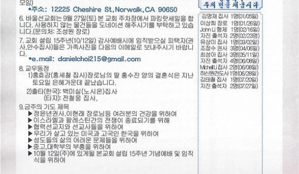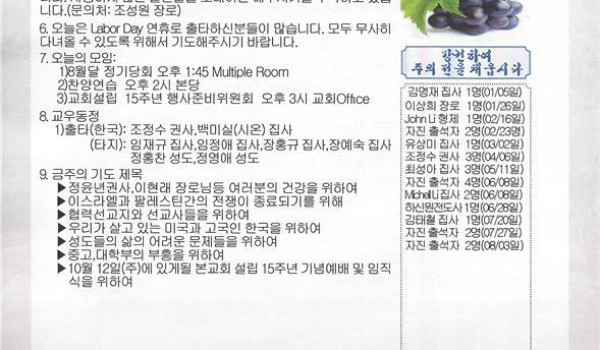 09/07/14 주일 교회 소식