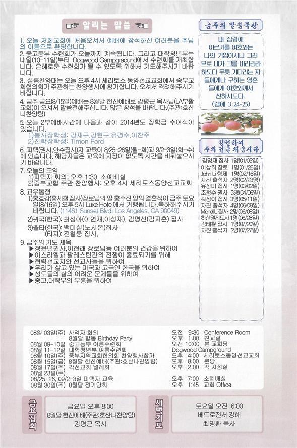 - 다음글08/03/14 주일 교회 소식 14.08.02