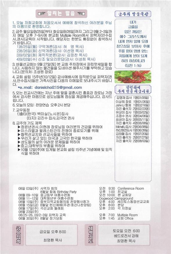 08/24/14 주일 교회 소식