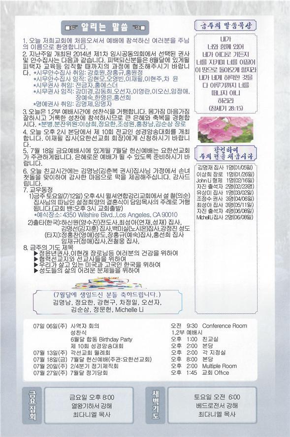 07/06/14 주일 교회 소식