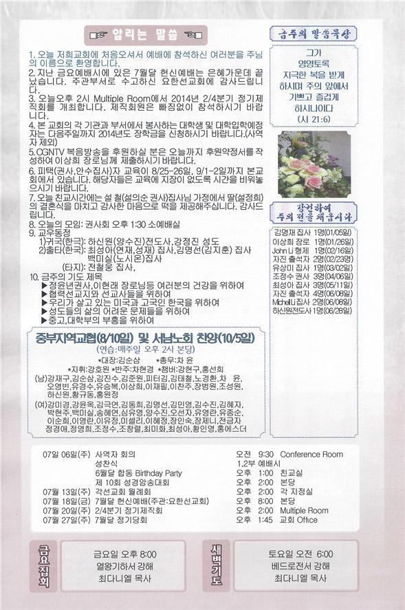 07/20/14 주일 교회 소식
