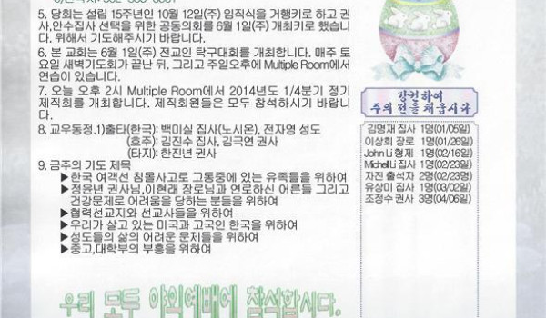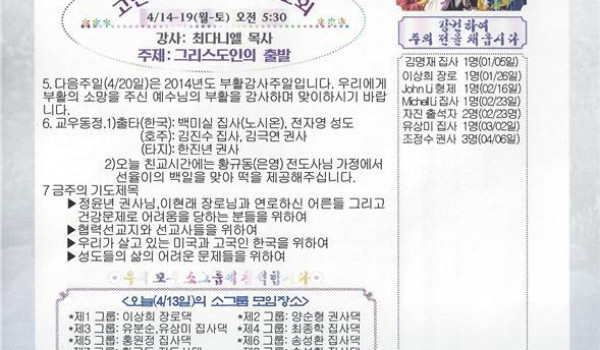 04/20/14 주일 교회 소식