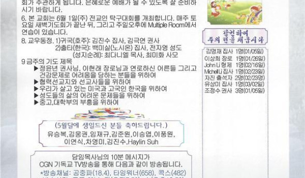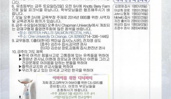 05/04/14 주일 교회 소식