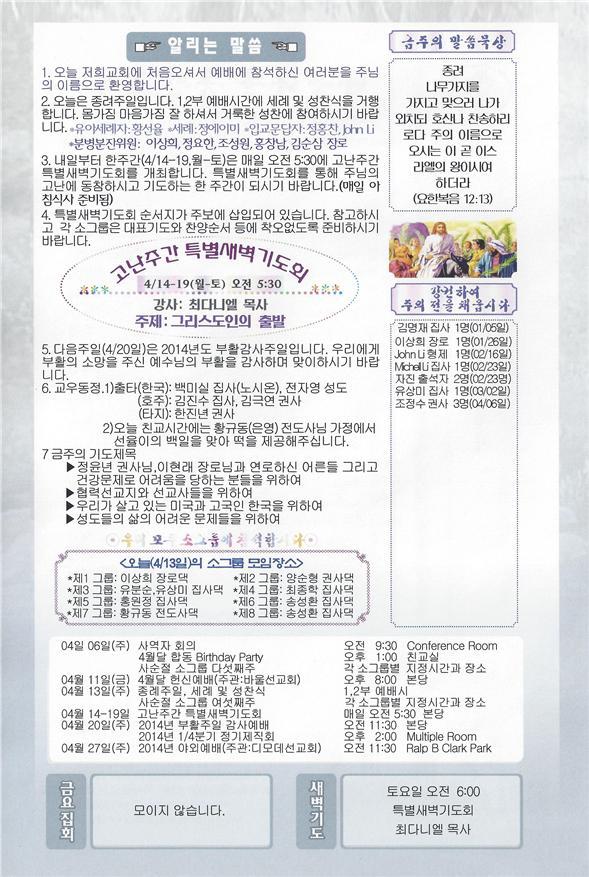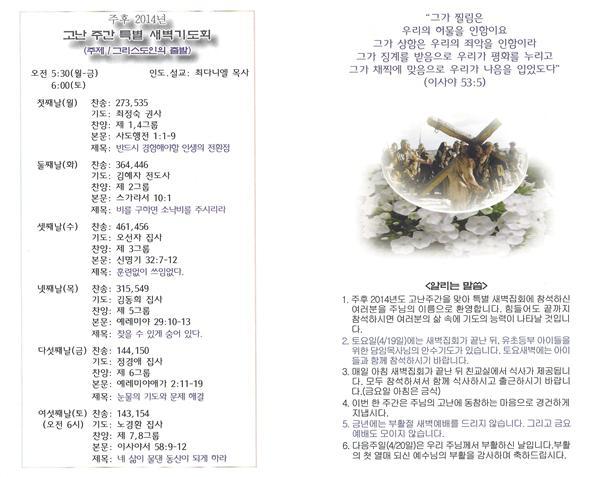 04/13/14 주일 교회소식 및 고난주간 특새 순서지