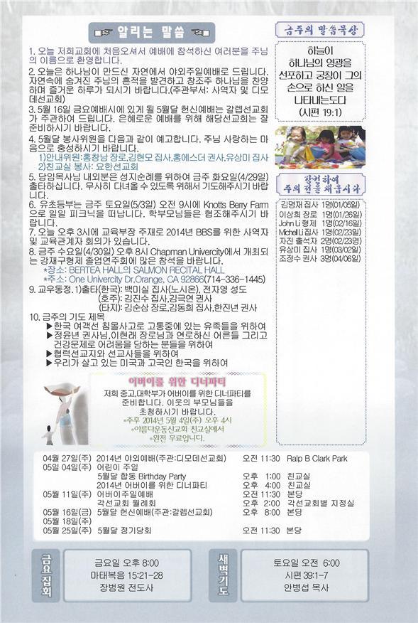 - 다음글04/20/14 주일 교회 소식 14.04.19
