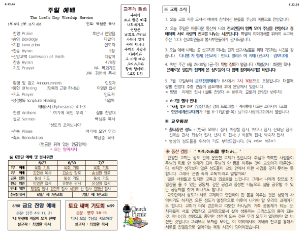 6/23/24 주보 페이지 정보 작성자 아름다운동산교회 댓글 0건 조회 2,048회 작성일 24-06-25 08:55 목록 본문 6월 23일 주일 주보 이전글06/30/24 교회 주보 24.06.29 다음글6/19/24 주일 주보 24.06.15 댓글 0 댓글목록 등록된 댓글이 없습니다. 목록